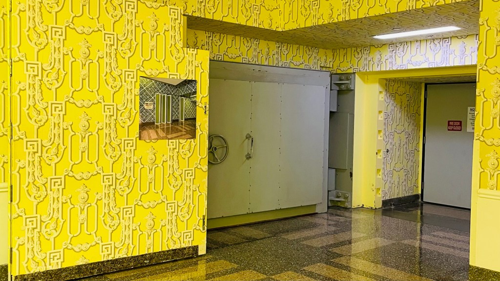 It certainly seemed to work. I was ready to leave. And pretty much as soon as we stepped out back into the exhibit room, the almost characterless architecture felt more welcoming than it had before. The checkerboard had had the intended effect. Still, it is easy to see that the bunker was built almost entirely with function in mind rather than fashion. It starkly contrasts the rest of the Greenbrier’s garish nature, almost like stepping into a full white-out snowstorm from an art museum. By the time we had been led back to the blast door, we first passed through, I was good and ready to return to the lavish resort. The bunker left me with an odd feeling. I saw more than I had initially expected, but at the same time felt like I didn’t get to see anything at all. Like they didn’t want anyone wandering too far into the compound.